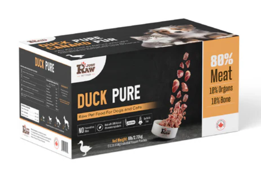 Product Details: Hormone and antibiotic-free ducks that are sourced locally in Ontario. Duck Pure is a single protein meal without any fruits or vegetables. It is a good alternative protein for dogs that are allergic to chicken. Duck also has a different flavor profile so it will keep your dog excited for each meal.