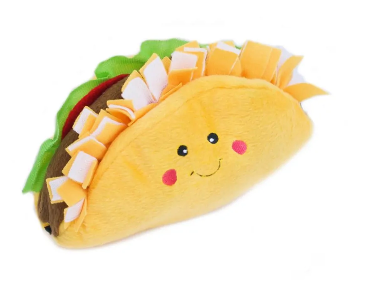 Make every day Taco Day! We’ve taken one of your favorite foods and transformed it into an adorable squeaky NomNomz® Taco plush toy for your dog!